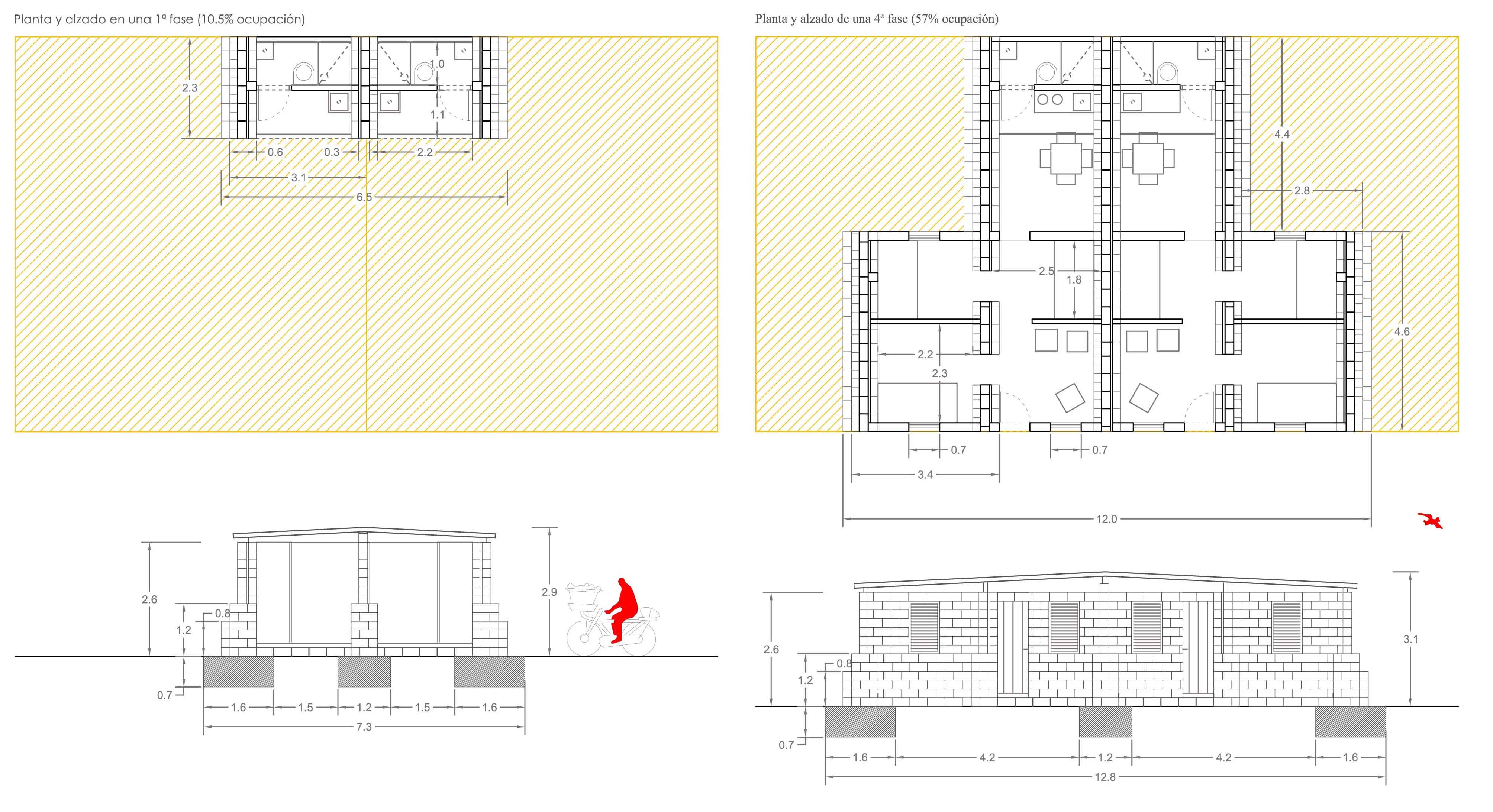 Por otro lado, se realiza un proyecto de vivienda progresiva que puede ser utilizado en un futuro para la sustitución de infraviviendas del barrio. Esta consiste en un módulo básico que puede ir ampliándose con posterioridad, en función de las necesidades y si el presupuesto lo permitiese.