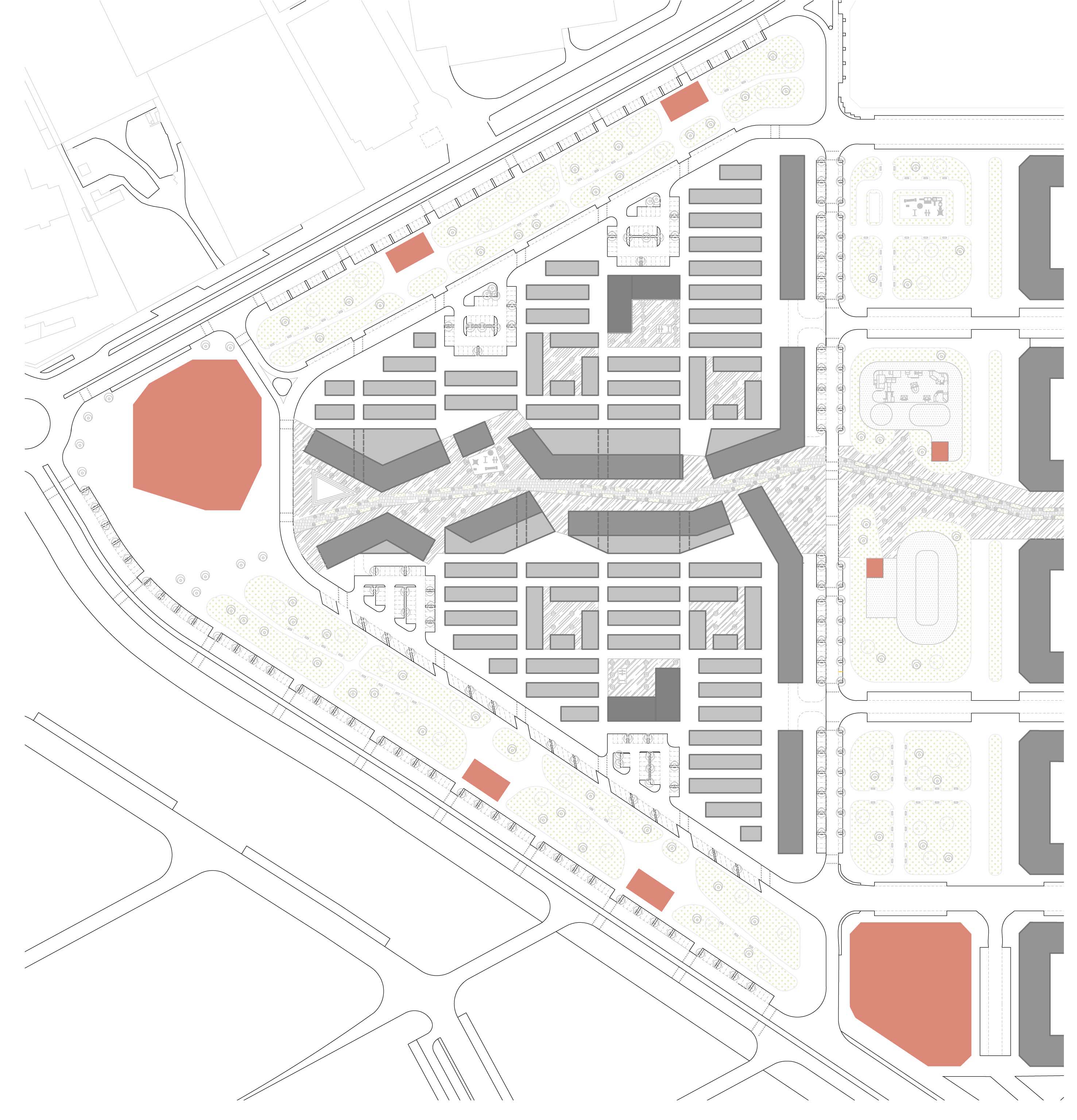 La actuación consiste en el desarrollo de un plan parcial en uno de los extremos del PAU Vallecas. El principal punto de partida es la conexión de la actuación con las calles adyacentes. A partir de ahí se genera una gran manzana peatonal con bolsas de aparcamiento distribuidas en los extremos junto a las vías estructurantes del lugar. Dentro de esa gran manzana se desarrolla una jerarquía donde aparece como viario de primer orden la calle central, comercial, que es la que conecta con el barrio existente. En ella aparece la edificación en bloque lineal, generándose dilataciones y contracciones del espacio público. El resto de la manzana es un tejido residencial unifamiliar tipo kasbah, no obstante, en él se generan dos bloques en altura como puntos de referencia, así como varias plazas de carácter local, a diferencia de las que se crean en la calle principal.
